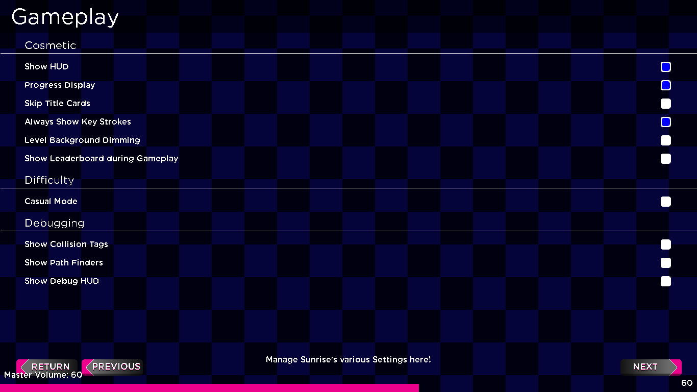 Sunrise is a 2D platformer / top down, featuring the ability to create and share levels you make to the world. On a mysterious day in the land of Solaris, the mayor who has been missing for 4 weeks, returns with the intent of violence, sending shockwaves across the world with a magic device, powerful enough to wipe anything from existence. With this newfound power, he shoots it up at the most important thing, the device powering the artificial sun. Now, with all light gone across the world, it's up to you to retrieve the pieces of the device, put them together, and stop the mayor before there's nothing left...